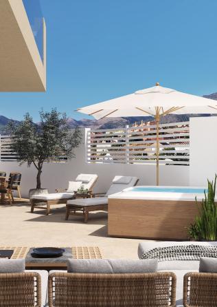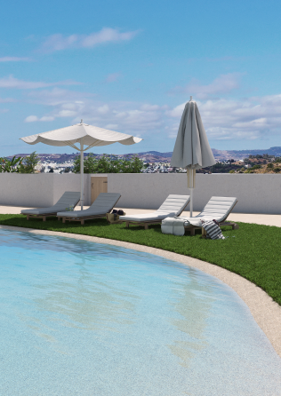 Las viviendas, que disponen de 2 y 3 dormitorios, se distinguen por sus amplias terrazas y en su mayoría por unas vistas que se pierden en el horizonte, pensadas para disfrutar en un entorno de lujo y tranquilidad, alejados del bullicio y del tráfico de la ciudad.